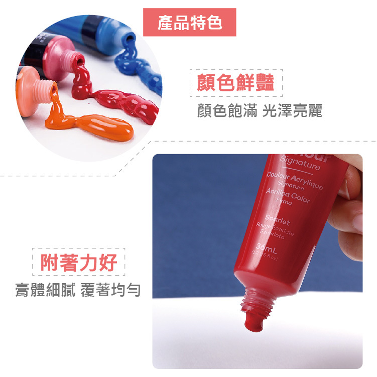 ●使用高級色粉及合成樹脂製作,顏料細緻好推開,繪畫筆感流暢,具有優秀的覆蓋能力。