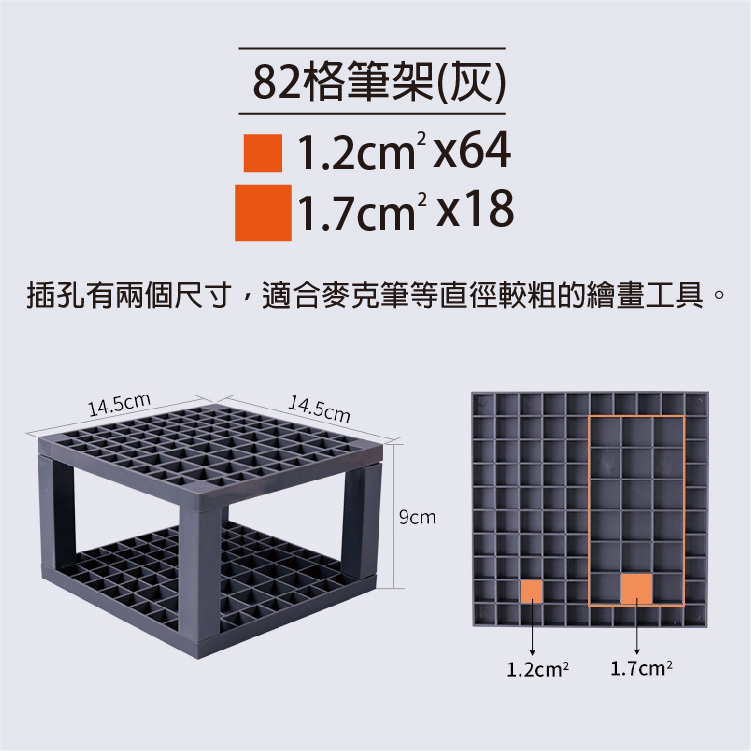 ●82格筆架(灰)-總格數82格,1.2cm*64格,1.7cm*18格