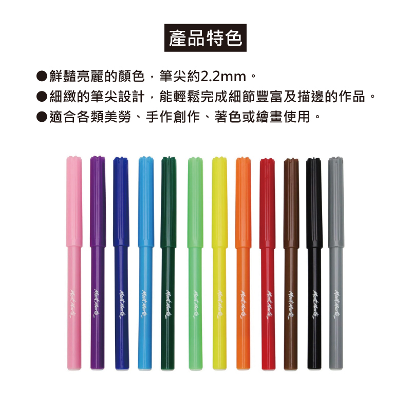●鮮豔亮麗的顏色,筆尖約2.2mm。