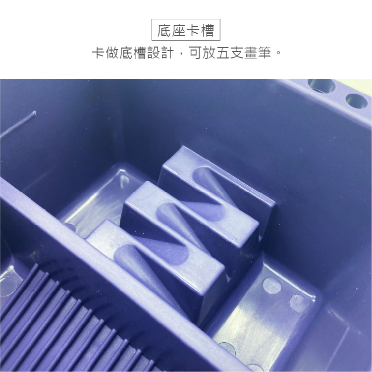 ●邊緣有卡槽可放置筆身,特殊設計,洗刷頭更輕鬆乾淨。