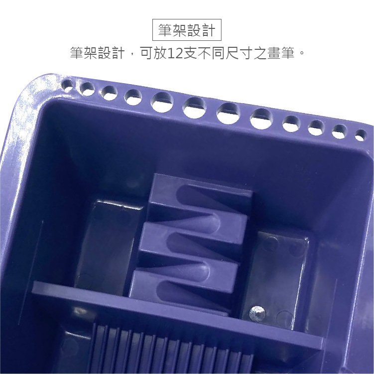 ●圓孔設計,可放置多支畫筆晾乾,方便拿取。