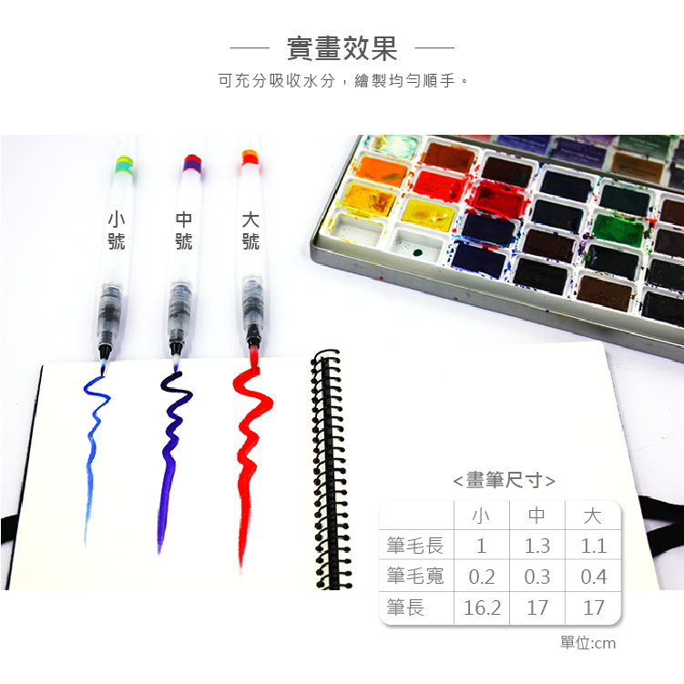 ●可當作水彩筆,也可搭配水性色鉛筆使用,攜帶方便、作畫迅速,塊狀水彩即沾即用。