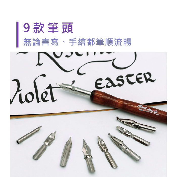 ●此套組有9款筆頭,筆順流暢,線條優美。