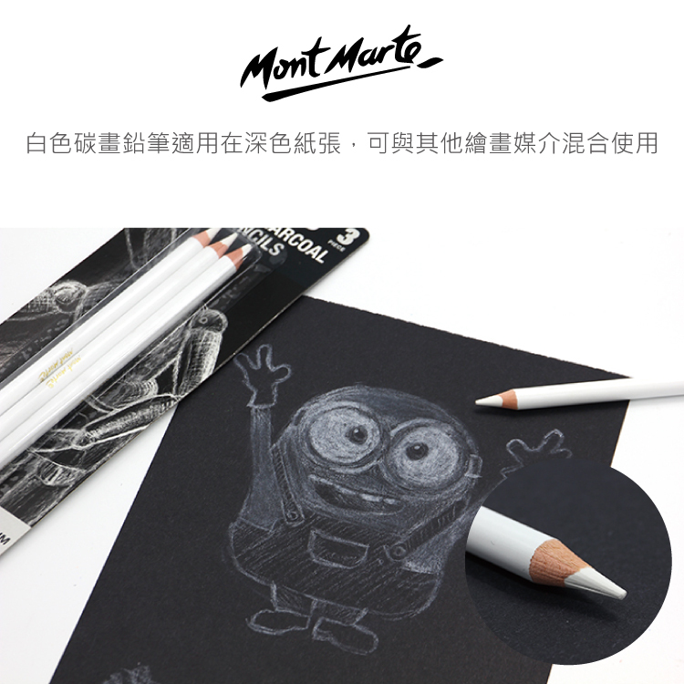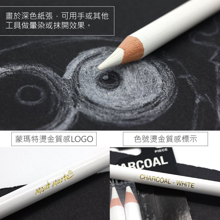 ●此碳畫鉛筆適用於深色紙張,也可與其他繪畫媒界混合使用,可搭配蒙瑪特深卡紙系列繪本。