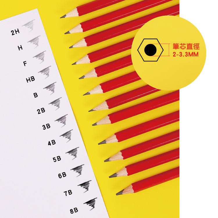 ●此套組有2H~8B,共12段色階,採用六角造型鉛筆,好握好繪畫。