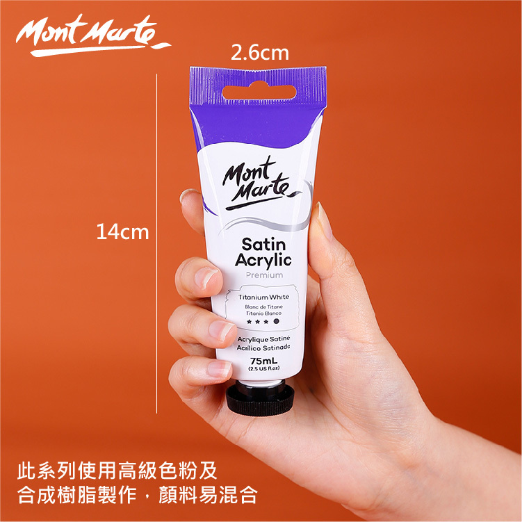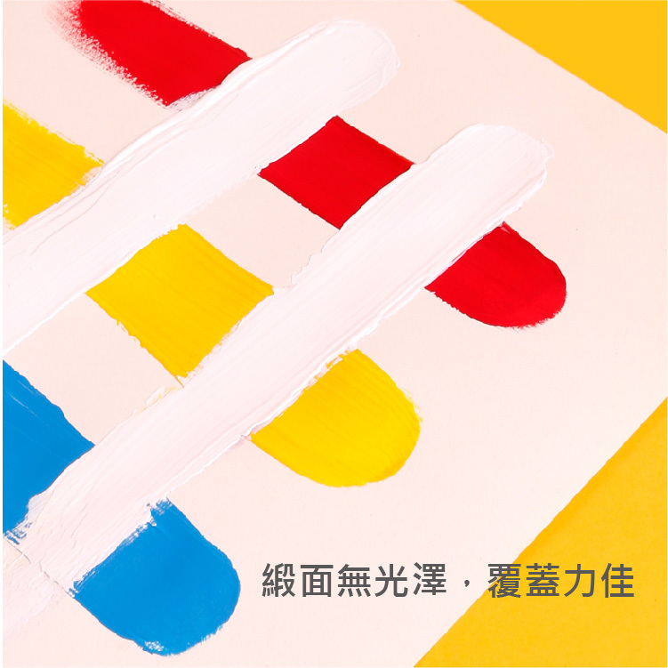 此系列使用高級色粉及合成樹脂製作,顏料易混合,繪畫筆感流暢,並具優秀的覆蓋力與耐光性,可適當用壓克力稀釋劑調合稀釋。