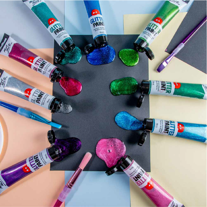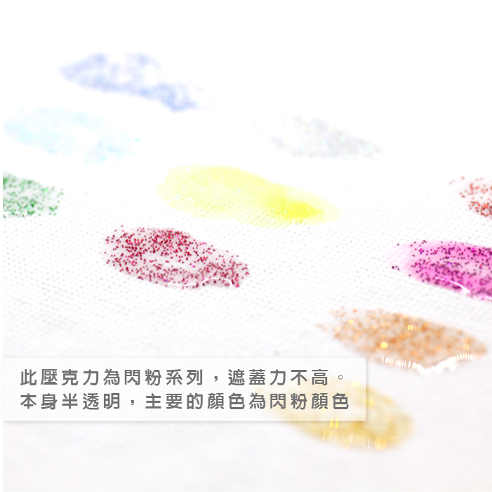●閃光膠是半透明膠狀物,可搭配壓克力或水彩混合出閃亮金蔥效果。