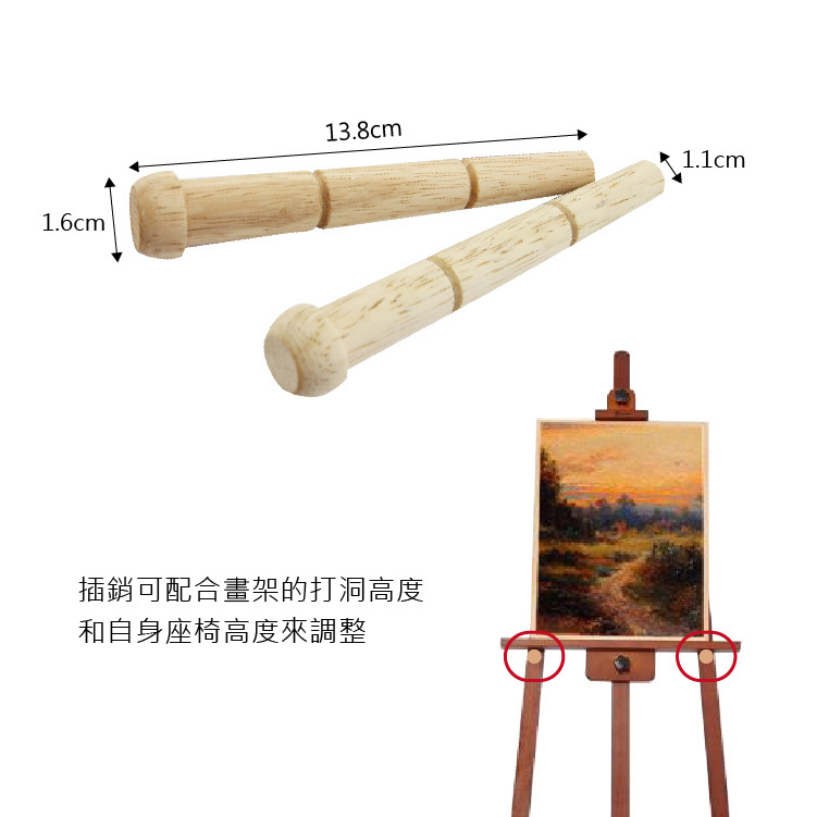 ●畫架插削(插梢):插在畫架的插削孔,用來調整畫布或畫板的高度。